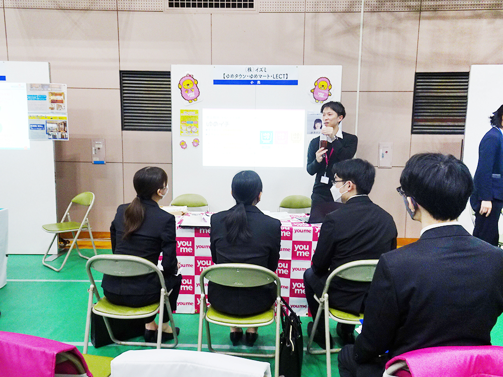 昨年12月26日、これまで本学の卒業生が就職した39社をお招きし、「企業と学生の合同業界研究会」を開催しました。当イベントには約150名の学生が参加し、熱心にブースでの説明を聴いていました。