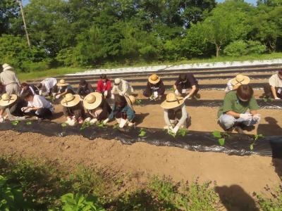 【2023年度フィールド科学実習Ⅰ】(9) 水稲田植え、サツマイモ苗定植(地域1年)