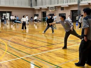 オリゼミでは,新入生に早く大学の雰囲気に慣れてもらい,学友や先輩,教員と親睦を深めるためのイベントです。オリゼミの企画はすべて情報分野の3年生が企画しており,今年度は,午前中はグループに分かれてグループ別に自己紹介からはじまり,教員紹介も兼ねたお絵かきクイズを実施しました。午前のクイズの結果は,同点の2位が3グループで接戦でした。昼食会をはさんで午後からは,大競技室でレクレーションとしてチーム対抗のドッジビーを行いました。あいにくの雨模様でしたが,ドッチビーは熱戦でした。最後にステージで記念写真を撮影してオリゼミ終了しました。